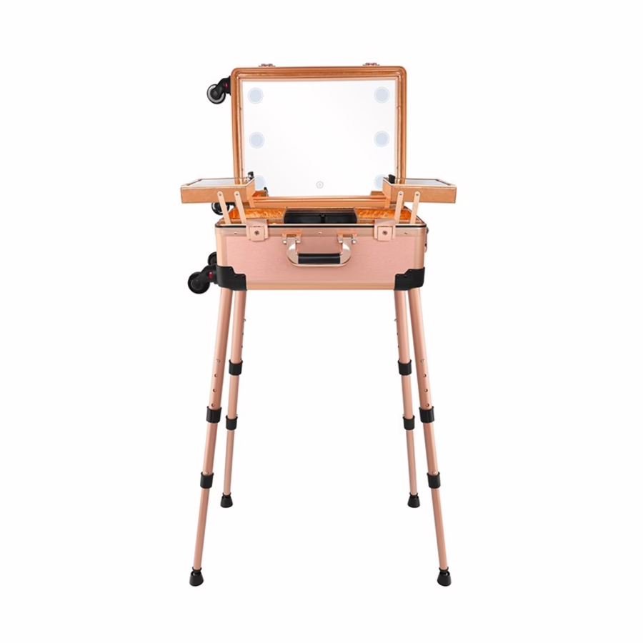Once at your workstation, you won't need a table to work on because the Keyson Beauty LC031 Makeup Case's four extendable feet allow you to easily set it up and freely adjust the height. This gives you complete flexibility to work wherever you want.