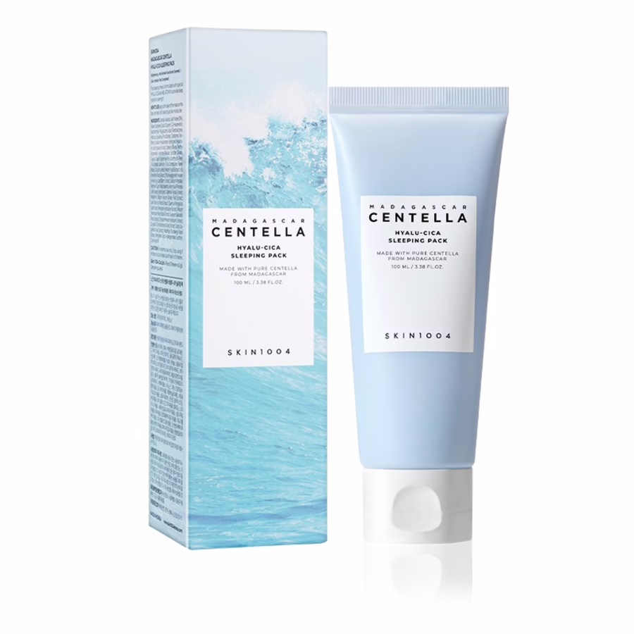 The Madagascar Centella Hyalu-Cica Sleeping Pack from the Korean brand SKIN1004 revitalizes tired, dry skin overnight. The sleeping mask contains a Hyaluron-Centella Complex, Melatonin, Niacinamide and Adenosine.