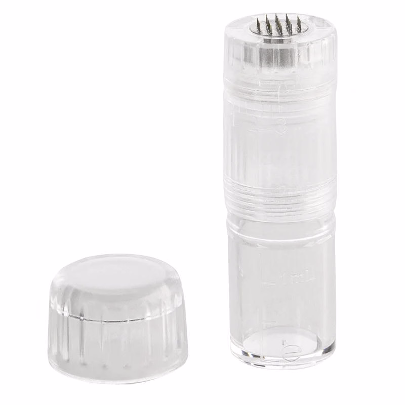 The needle cartridge also serves as a liquid container with automatic serum application. You can pour the desired skincare product directly into the cartridges (up to 3 ml) to deliver it deep into the skin as soon as the needles penetrate. This ensures up to 90% better absorption of active ingredients.