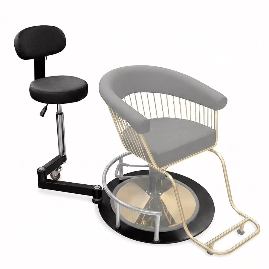 1x Friseur- und Barbierstuhl-Erweiterung mit integriertem Rollhocker Schwarz