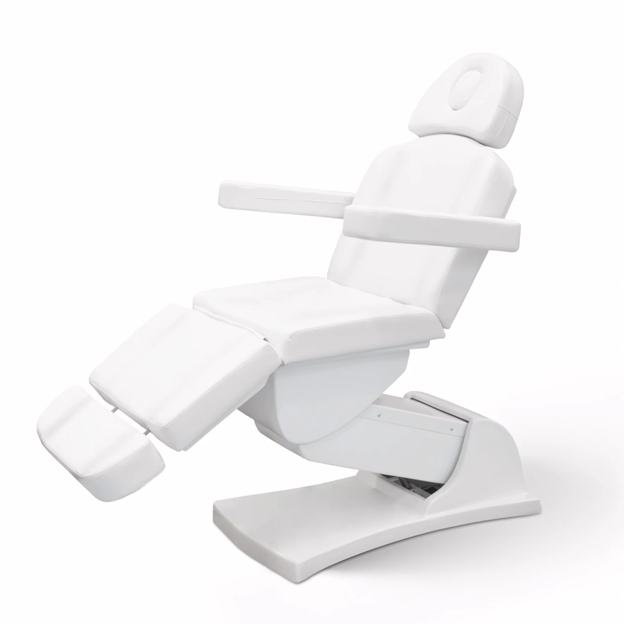 To position your clients perfectly for each treatment, you can adjust the backrest as well as the armrests and footrests as required. The settings are made by one of the three motors and controlled via a remote control, which is connected to the beauty bed via a cable. Put your client in an upright position or lower the backrest and raise the footrest for a reclined position. Even if you need to work on your client's back, this is no problem because the head section has a recess that you can quickly remove.