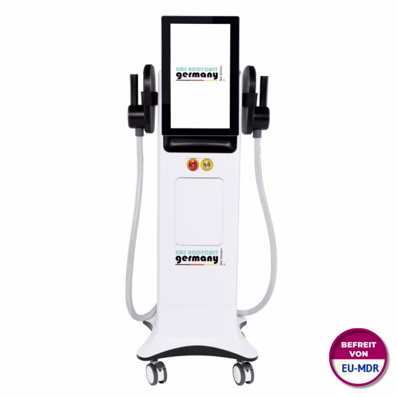 During the 30-minute session, the muscles contract 30,000 times and behave in the same way as during extreme sport. Particularly practical: the device switches off automatically at the end of treatment. Thanks to the stable, mobile castors, the EMS BodyCult Germany can be flexibly positioned wherever you need it for the treatment. You will soon be offering your customers an all-round optimized silhouette!