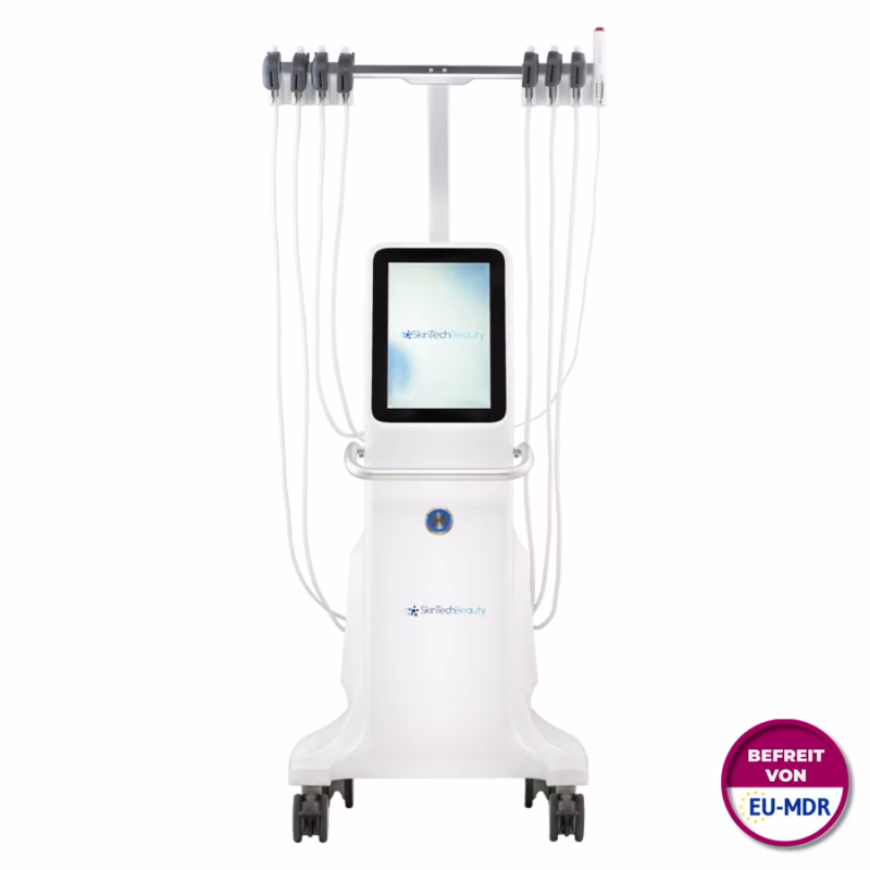 The innovative device is intuitive to use: Simply attach the pads to the areas of the face to be treated, connect the pads to the electrode clamps of the SkinTechBeauty EMS Glowup and control the intensity of the RF and EMS energies easily via the 15.6-inch touch display. You can adjust the energy intensity of the 6 electrode clamps independently of each other - depending on the customer's needs.