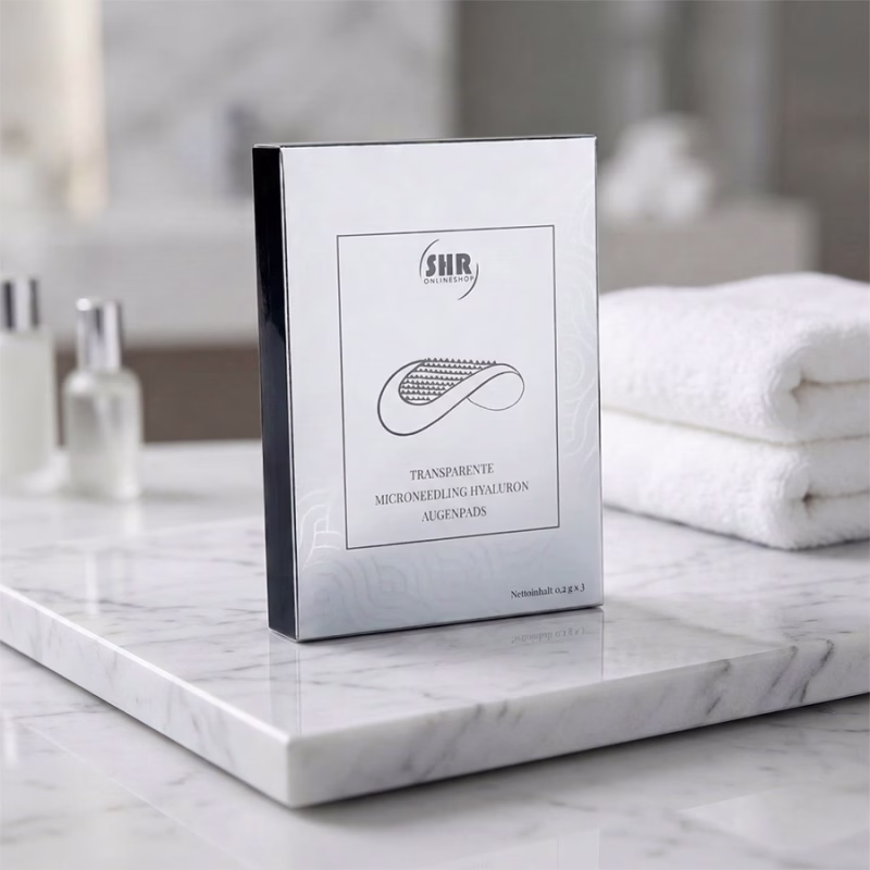 The silver SHR Germany microneedling pads for the eye area are the solution to all the unpleasantness that can appear on the skin under the eyes. These include not only dark circles and dryness lines, but also tired, sallow skin, sagging and bags under the eyes. With the transparent eye pads, you can specifically counteract all of these visual "problems".