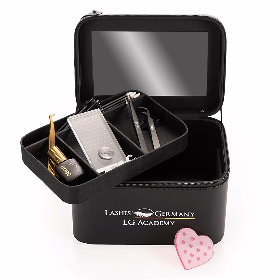 Let's start with the heart of the set: the Lashes Germany eyelash case. It offers generous storage space for all your lash tools and care products - ideal for on the go or in the studio. Its sleek, black design is functional, space-saving and elegant at the same time.
