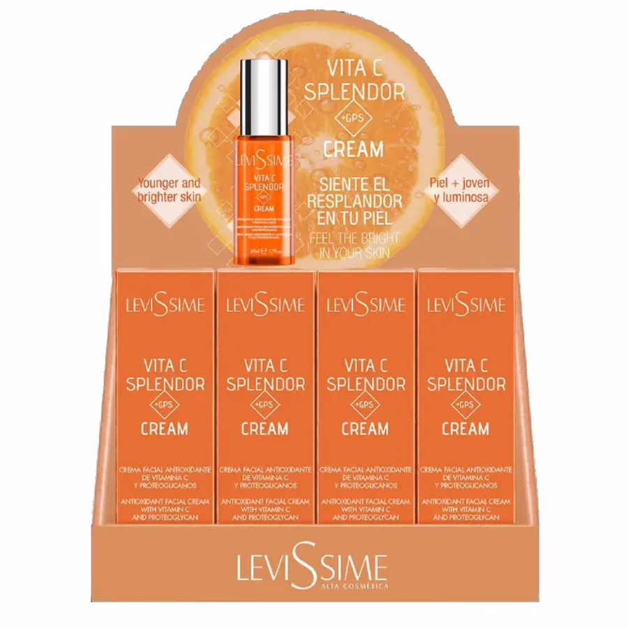 Attracts attention and inspires with fresher, top-nourished, rosy skin that looks years younger: the LEVISSIME Vita C Splendor Cream in a display of 12!