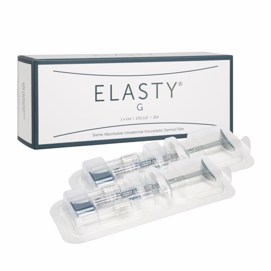 - Elasty G Hyaluronic Filler 2 x 1 ml: This filler is suitable for the treatment of medium to deep wrinkles and for facial volume contouring. Particularly effective for nasolabial folds, chin contouring and cheek augmentation.