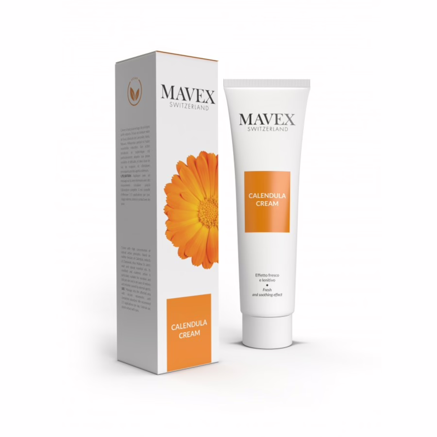 Mavex Calendula Cream is a soothing cream made from 98% natural ingredients. With a complex of highly concentrated medicinal herb and plant extracts, the cream helps to soothe redness and irritation and gives an immediate, pleasant feeling of relief. Calendula cream is particularly worth applying after sunburn or hair removal.