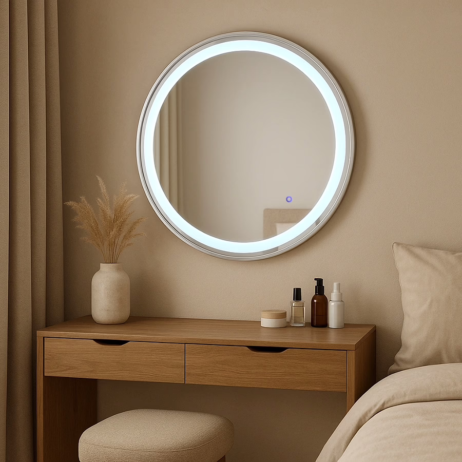 The mirror with innovative LED lighting can be adjusted by touch on the designated surface and always creates perfect viewing conditions - from bright to soft, warm light. The mirror model illuminates every detail precisely, enabling a flawless beauty routine.