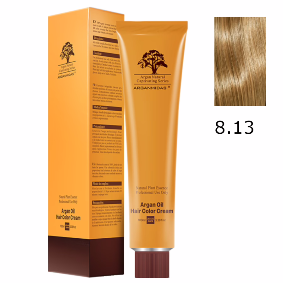 Would you like a golden blonde shade that shines in the sun and is surrounded by a cool, ashy freshness like a pleasant summer breeze? Then the Arganmidas Moroccan Argan Oil Hair Colour Cream in the shade Light Ash Golden Blonde 8.13 is your new dream hair colour!