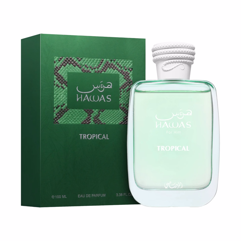 Rasasi Hawas Tropical Eau de Parfum smells just like it looks: greenish-exotic.