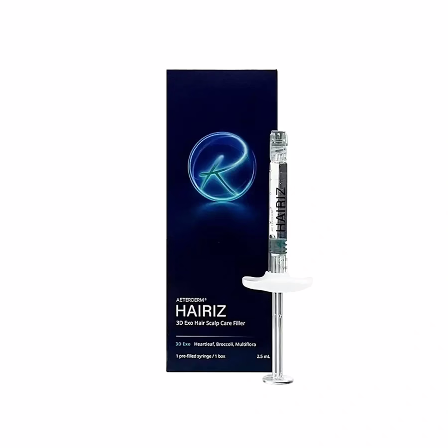 The AETERDERM HAIRIZ 3D Exo Hair Scalp Care Filler is an active ingredient mix based on exosomes. Exosomes are tiny particles that transport cell information and can stimulate regenerative processes in the scalp - for example to promote hair growth or repair damaged cells.
