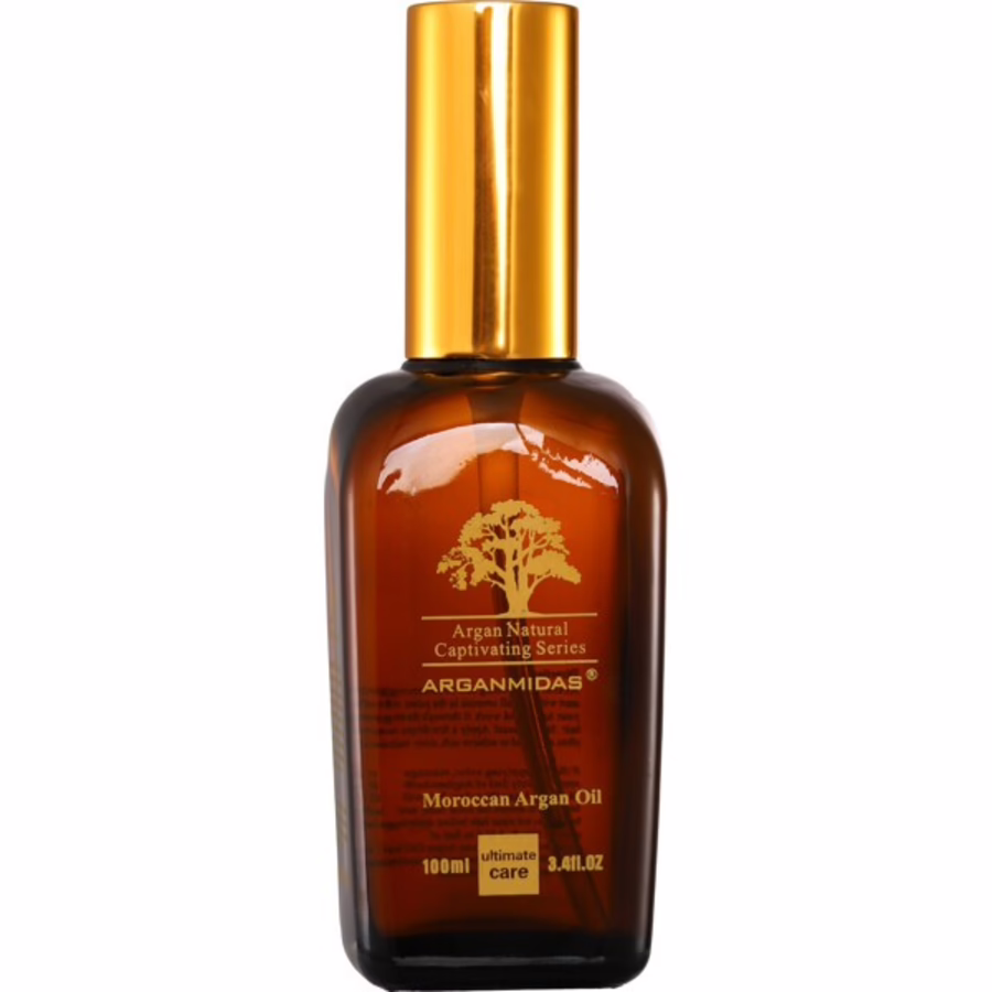 Arganmidas hair and skin care oil contains high-quality argan oil and is rich in vitamin E and antioxidants.