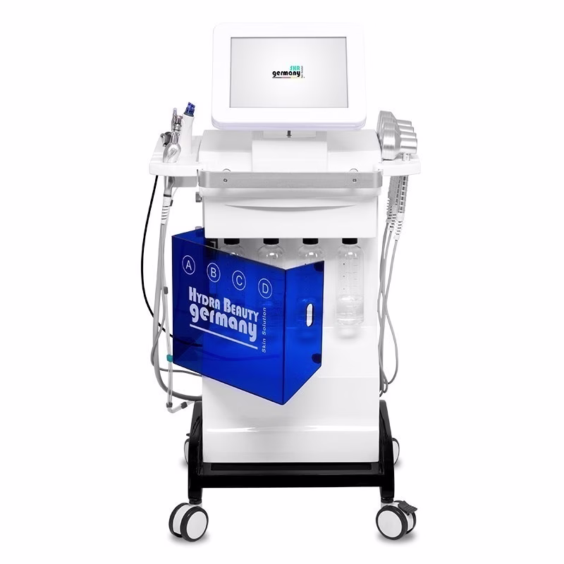 The Light Facial Beauty device works with 4 solutions. Firstly, water pressure and a cleansing solution are used to remove calluses from the top layer of skin and sebum and dirt from the skin. A second cleansing solution, accelerated to high pressure, is shot onto the skin via the treatment head of the facial device and immediately sucked out again using a vacuum. The skin is deeply cleansed and then moisturized with active ingredients such as hyaluronic acid, vitamins, minerals and urea. The device is also equipped with a disinfectant solution, which is used to clean the treatment head. The treatment is painless and very pleasant.