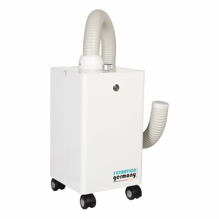 In addition to strong suction power and first-class air filtration, the Blue Eva air filter unit impresses with its absolutely user-friendly operation. The unit can be switched on and off at the touch of a button. A rotary knob on the top allows quick adjustment of the suction power. Cumbersome button combinations and constant leafing through the manual are a thing of the past with this powerful device!