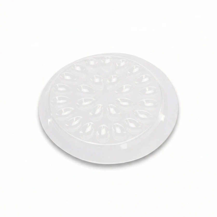 The palette has several, uniform indentations that can be completely filled with exactly one drop of glue. The shape of the wells prevents the drop from melting and spreading. This not only keeps the workplace clean, but also reduces the surface area of the drop in contact with the air. In this way, the glue dries more slowly and can be used for much longer during the treatment.