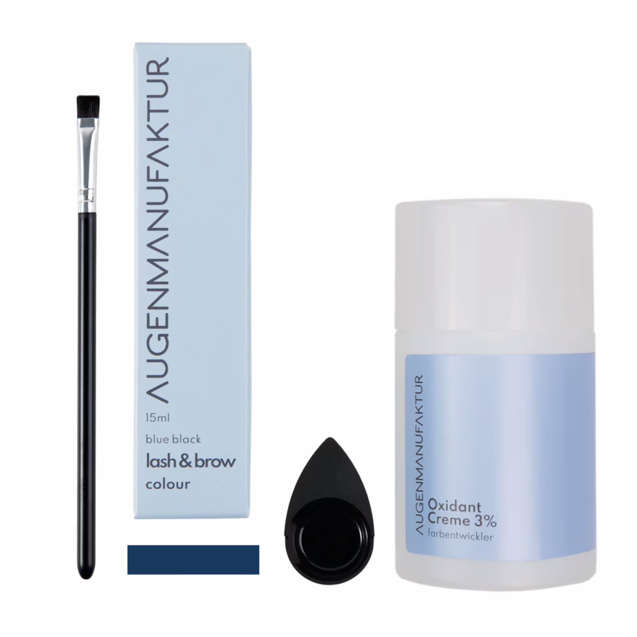 With the Augenmanufaktur Lash & Brow Color Blue Black included in this order, you have a black shade with a bluish shimmer. This provides extra color depth and stunning brilliance, especially when tinting eyelashes.