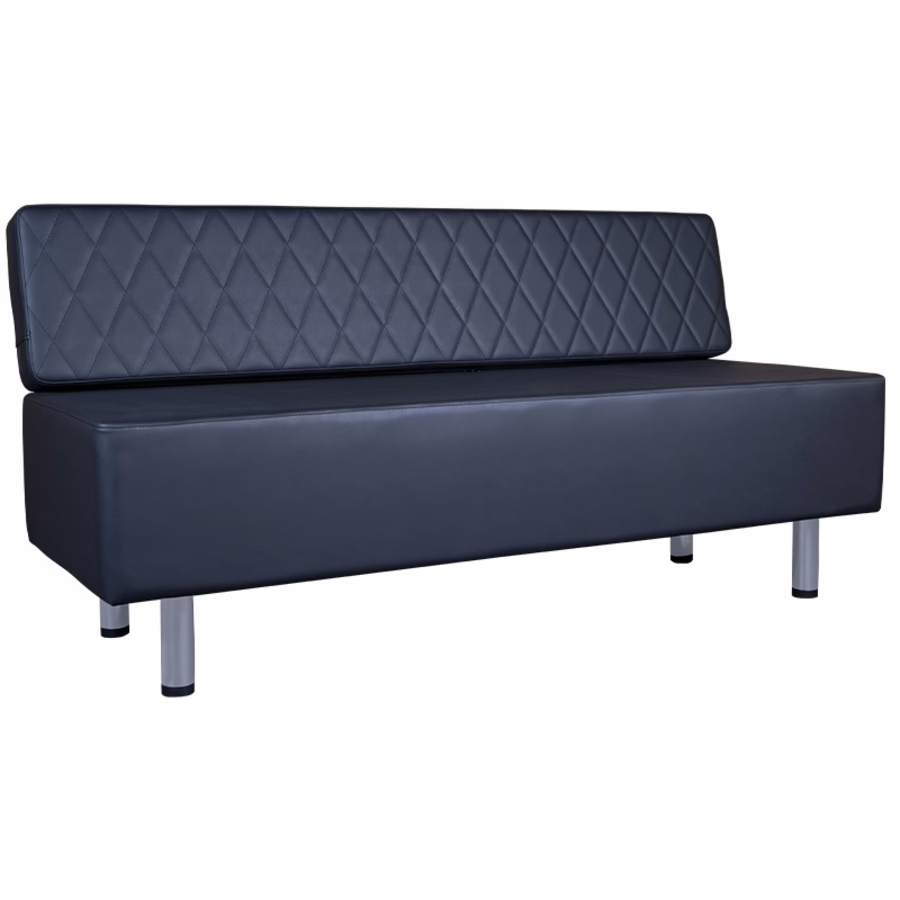 Black bench with diamond quilted pattern beautifies any room and complements the interior with a modern look. Classy details on the high, comfortable backrest adds style and luxury. The wide, sturdy stainless steel legs round out the impeccable design. The classic black color can be excellently combined with any interior style. The practical length of 1.5 m provides a comfortable seat and transforms the waiting area into a relaxing oasis. The sturdy faux leather cover is extremely resistant to liquids, tears and is also extremely easy to clean.