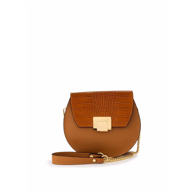 The "Janet" crossbody bag from STUFF MAKER is the embodiment of classic style and modern elegance. In the warm cognac/brown colour scheme, it radiates a natural exclusivity that is perfectly underlined by the exciting mix of materials. The smooth leather harmonises perfectly with the striking crocodile embossed flap, giving the bag its characteristic high-fashion look.