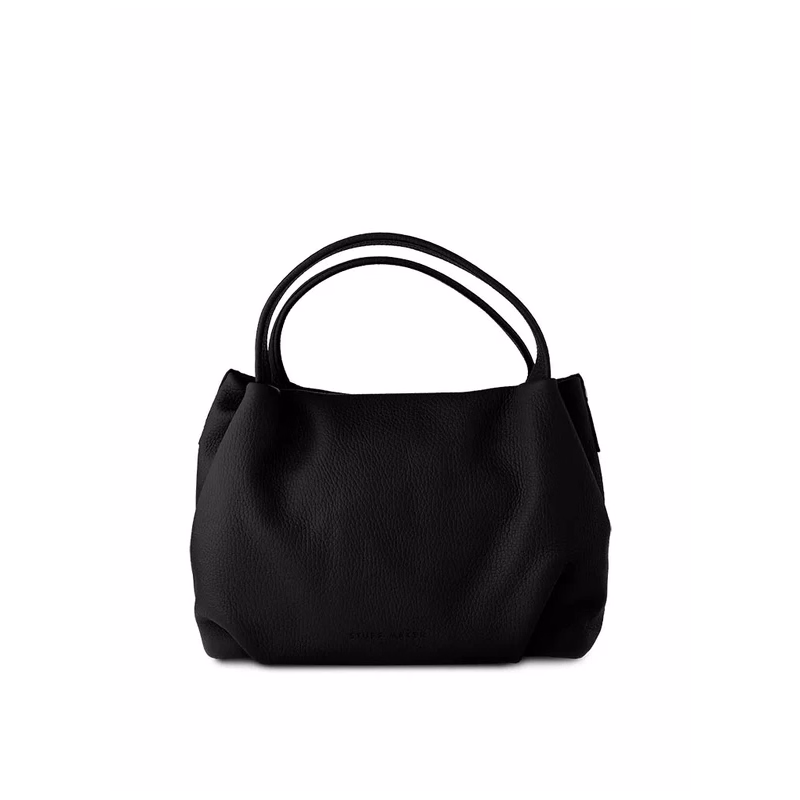The "Susann" handbag from STUFF MAKER is a masterpiece of design. In the classic colour shade of black, it embodies a natural elegance that is perfectly accentuated by the high-quality, textured leather. The fine grain of the material gives the bag a particularly sophisticated feel and makes it a robust companion that impresses with its simple sophistication.