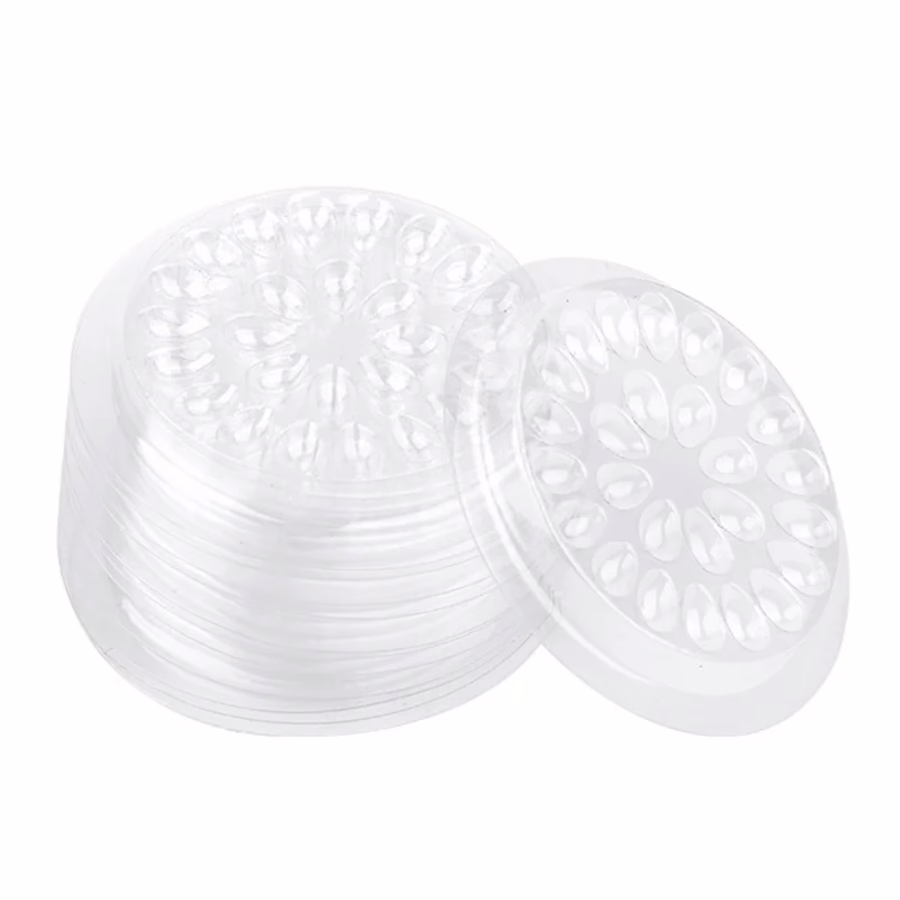 It is made from robust plastic and has a total of 26 small indentations. Simply drop the required eyelash glue into the indentations before the treatment, dip the lashes into the glue and then apply them to your customer's natural lashes. The laser extension treatment is much more convenient!