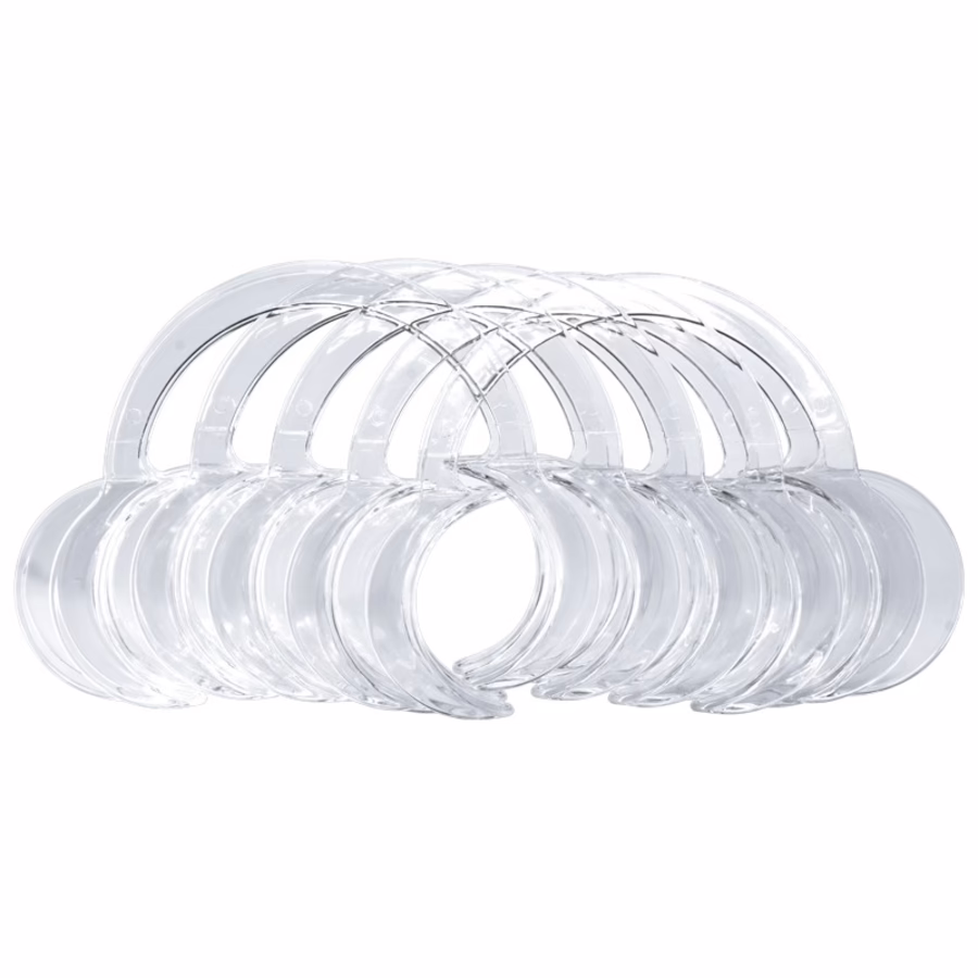 The hygienic disposable product is comfortable to wear and the bleaching gel can be optimally activated by the bleaching lamp without the lips covering the teeth. The transparent cheek holders are available in a practical pack of 5.