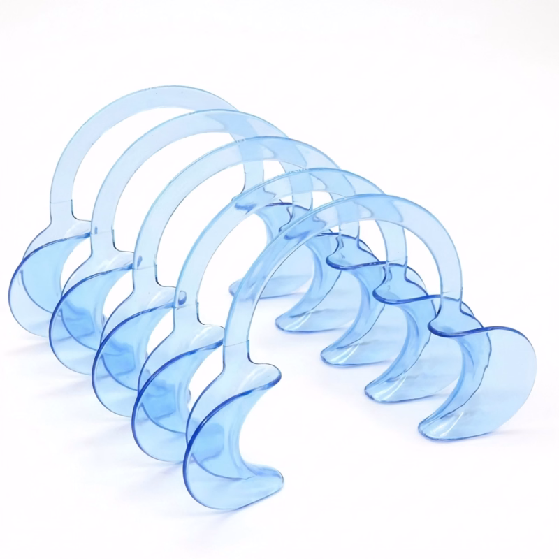 Designed for professional teeth whitening and home whitening, the mouth clamp gently holds back cheeks and lips and provides a clear view of the entire oral cavity and the teeth to be whitened.