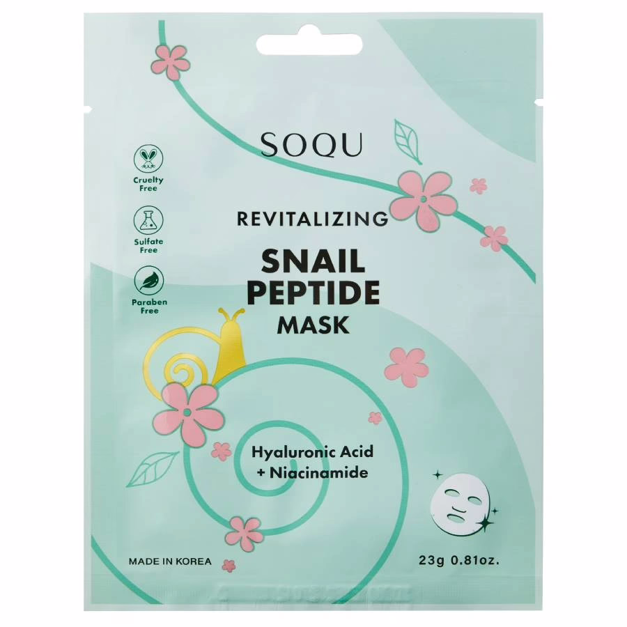 Together, the beneficial ingredients in the Soqu Snail Peptide Sheet Mask act like a fountain of youth for your skin, leaving it looking instantly smoother, more even, radiant and younger!
