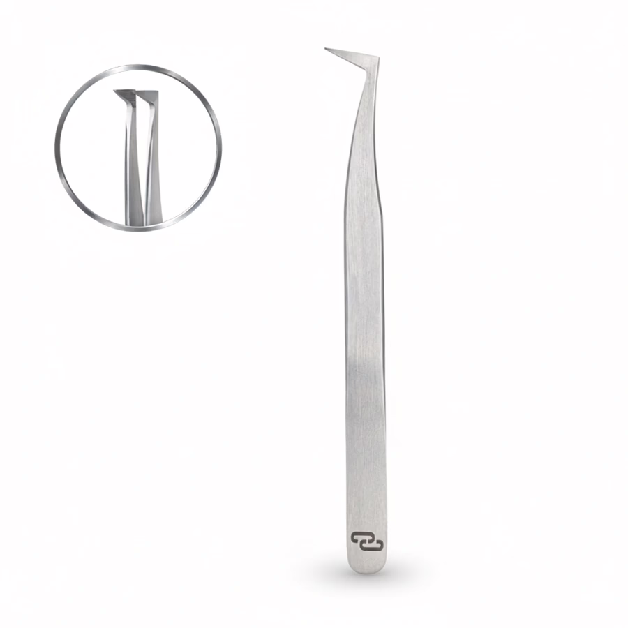 The Lash Artist curved tweezers type 8 have been specially developed for precise work on eyelash extensions. Their curved head and long, tapered end enable exact gripping and placement of the artificial lashes - ideal for volume techniques and fine detail work.