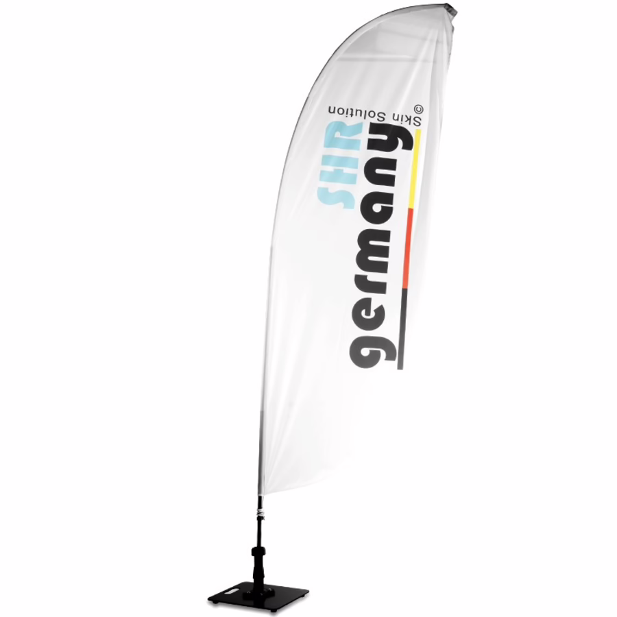 Attention for your cosmetic studio! Our advertising flag stands for quality - as the German market leader in apparative cosmetics with more than 52,000 satisfied customers in 56 countries, you can use our SHR advertising flag to use our reach for yourself and optimally advertise treatment with our equipment. The high-quality flag stands on a sturdy steel stand and is therefore stable - without being too heavy for transport. Guarantee your customers an excellent first impression with our flag and continue to convince them with our high-tech equipment afterwards.