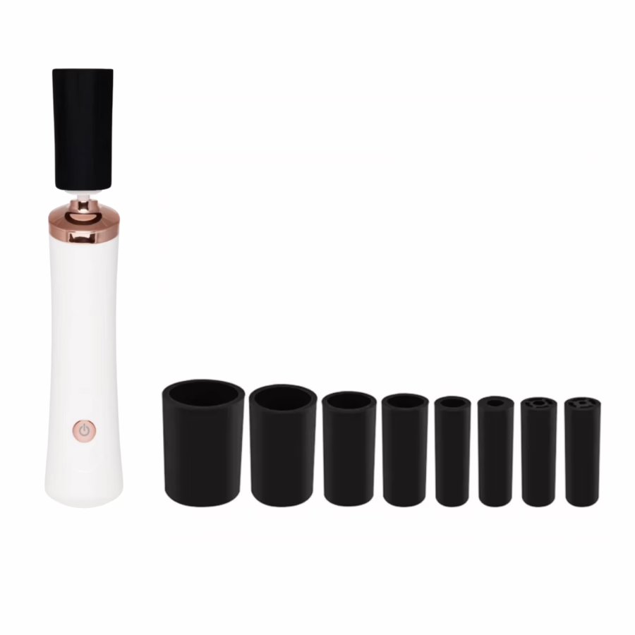 All you have to do? Put your glue, varnish etc. into the shaker with the appropriate one of the eight silicone attachments supplied, press the start button and wait 10 seconds. Your glue is liquid again, the polish is ready to use or the cosmetic brush is free of excess water (e.g. after cleaning)!