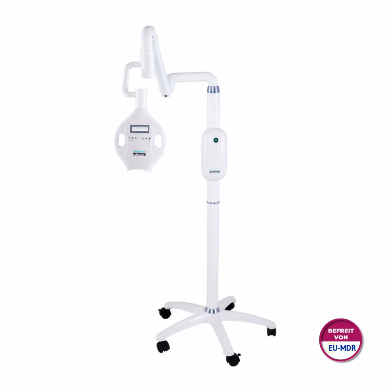 A bleaching gel is applied to the teeth and activated using the LED lamp. The gel penetrates the tooth enamel and changes the colorant molecules. The decomposition of hydrogen peroxide into water and oxygen radicals, which migrate through the enamel, causes the color molecules to be broken down and thus discolored.